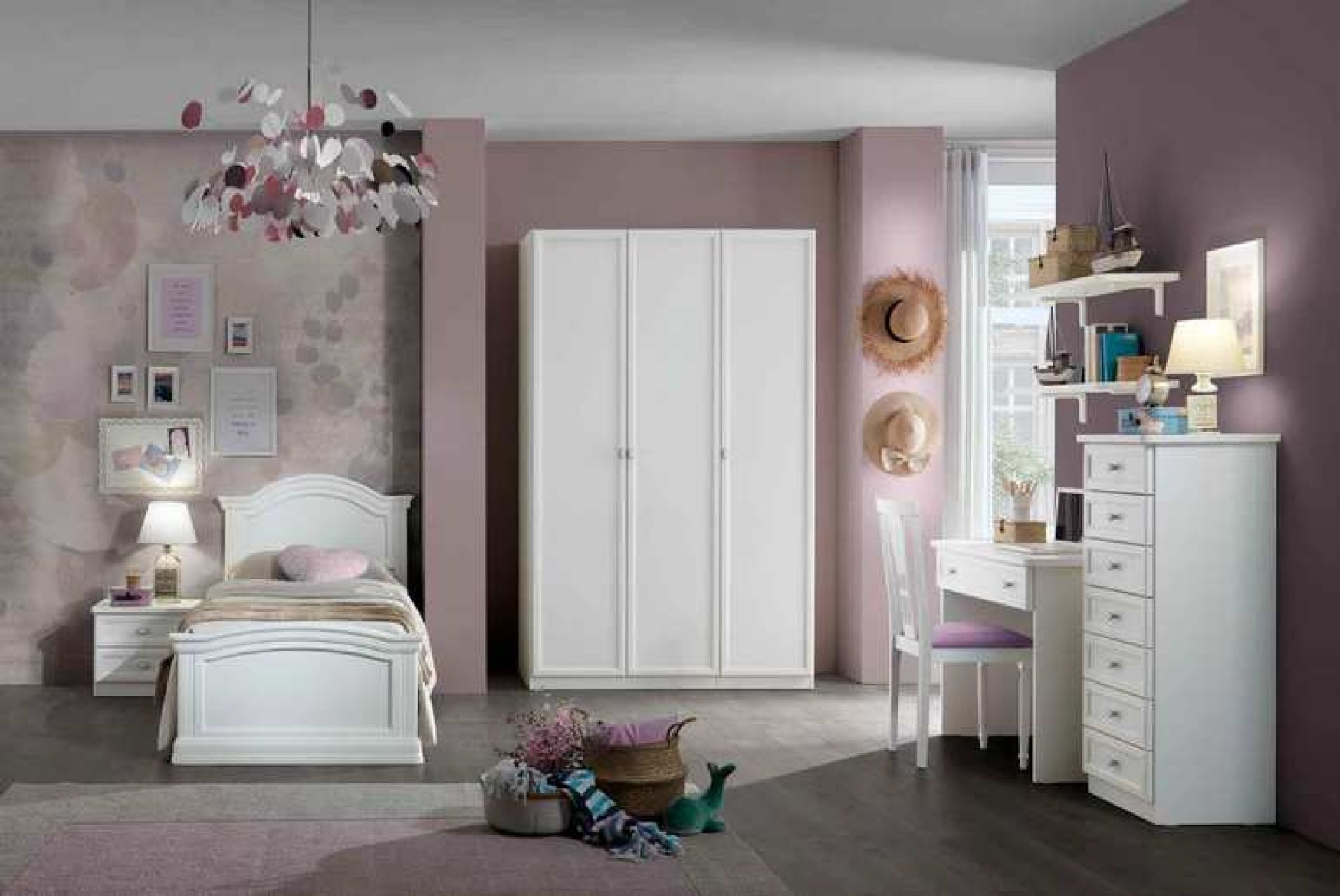 Composta da: armadio battente, letto, comodino, scrivania con cassetti, sedia, mensole, settimino.